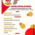 Si terrà venerdì 20 marzo 2026 alle ore 17.00, in Piazza Matteotti (angolo Torrefazione Bocchia) a Chiavari, l’iniziativa di chiusura della campagna referendaria per...