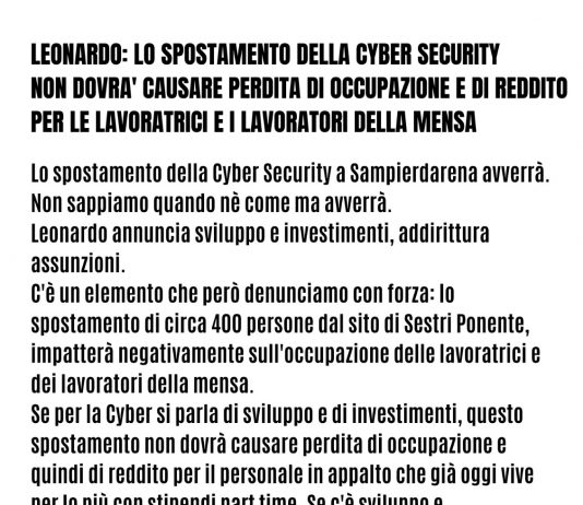 Pulizie Leonardo: sciopero e presidio in Via Puccini dalle ore 9