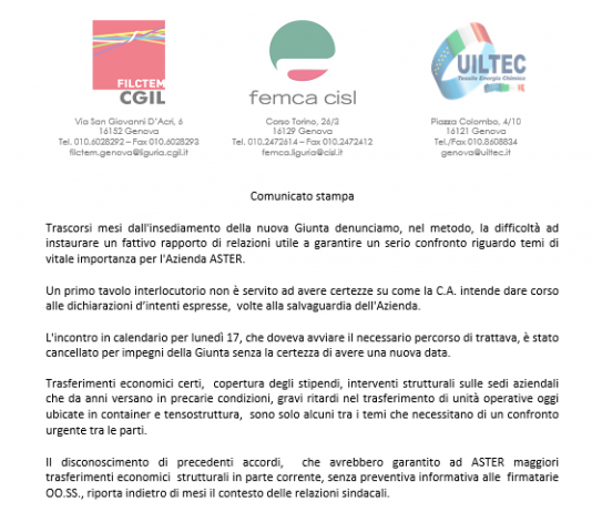 Oggi a Genova il presidio Fp Cgil Cisl Fp e Uil Fpl per il...