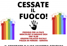 Mercoledì 15 maggio De Ferrari Genova, presidio per la Pace “Cessate il fuoco!”