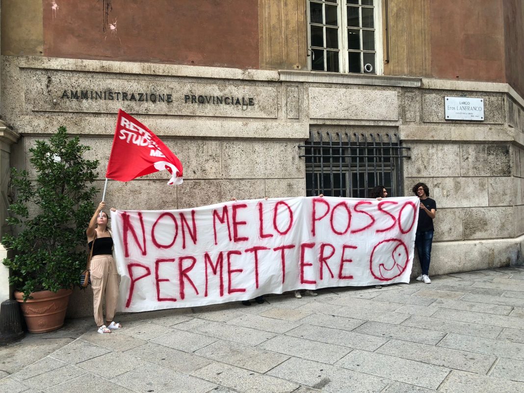 Stamane in Prefettura la protesta della Rete degli Studenti Medi della Liguria sul primo giorno di scuola, che arriva insieme alla campagna “Non me lo posso permettere” sul caro-scuola.