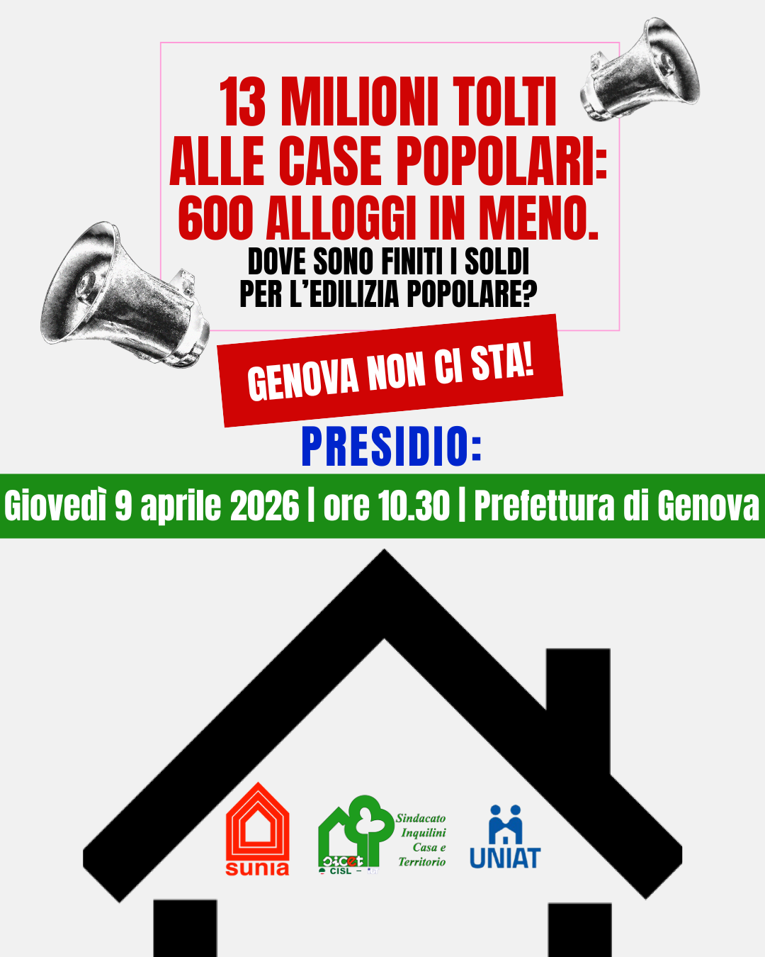È inaccettabile il taglio del Governo dei fondi destinati all’edilizia popolare, per Genova significa perdere 13 milioni di euro che si traducono in 600 alloggi che non potranno essere assegnati e che al contrario potrebbero essere disponibili a breve con annessa ristrutturazione di 2 mila abitazioni ad oggi inagibili.