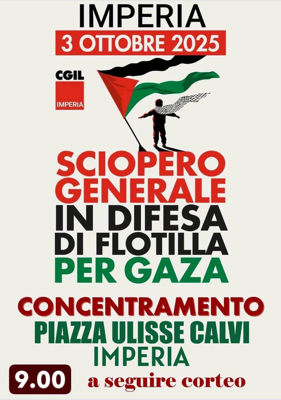 La CGIL ha proclamato, per domani, uno sciopero generale nazionale di tutti i settori pubblici e privati per l’intera giornata, ai sensi dell’art. 2 comma 7 della L.146/90, in difesa della Flotilla, dei valori costituzionale e per Gaza.