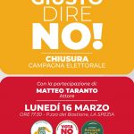 Si terrà lunedì 16 marzo alle ore 17:30 in Piazza del Bastione alla Spezia l’iniziativa pubblica di chiusura della campagna elettorale per il No...