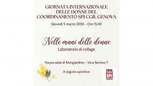 SPI GENOVA: giovedì 5 marzo 2026, ore 15 Nelle mani delle donne – laboratorio di collage a cura del coordinamento Spi Cgil Genova – Nuova sede di Mongiardino, vico Semino 7
