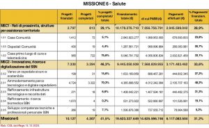 Particolarmente critica la situazione dei progetti destinati alla realizzazione delle reti di prossimità e strutture per l’assistenza territoriale per le quali a ottobre scorso risulta speso solo il 28,9% dei 10,2 miliardi di euro disponibili, e solo il 29,1% dei progetti sono stati completati. In meno di otto mesi dovranno essere terminati 1.984 progetti e spesi 7,2 miliardi di euro: davvero una sfida contro il tempo.