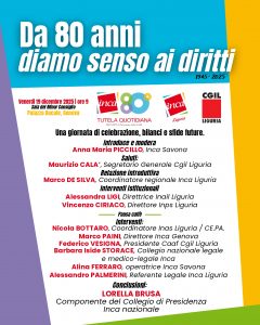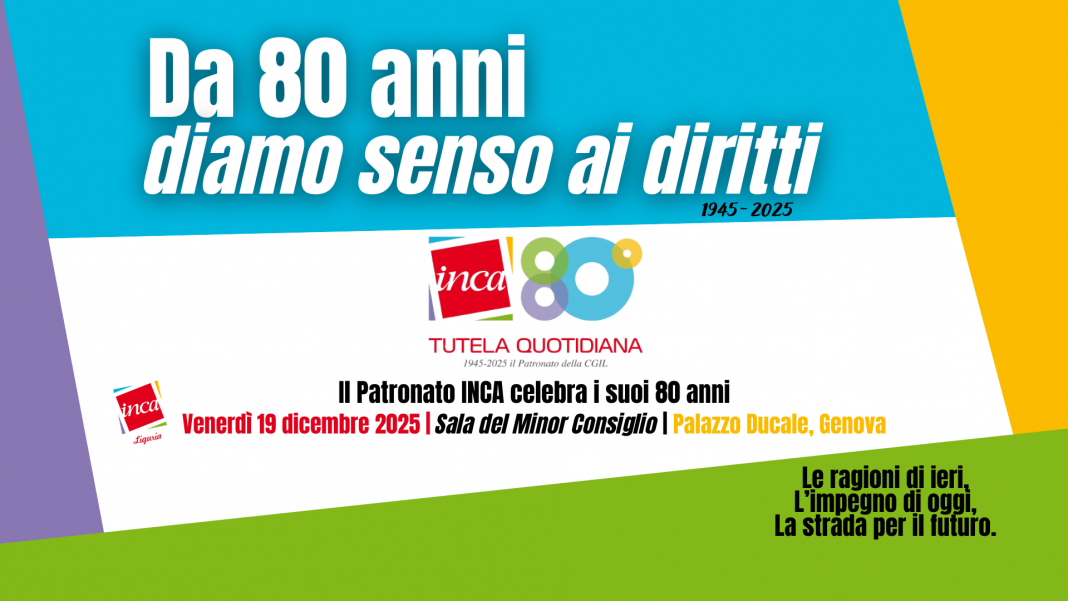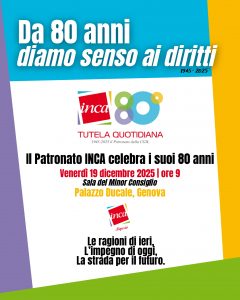 Venerdì 19 dicembre alle ore 9 presso il salone del Minor Consiglio di Palazzo Ducale a Genova, il patronato Inca Cgil celebra i suoi 80 anni.