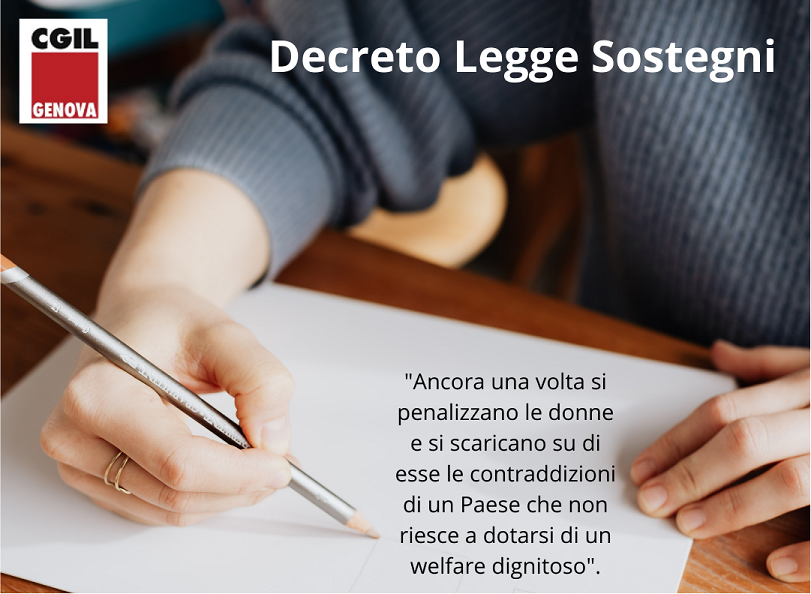 Decreto Sostegni: “Ancora una volta si penalizzano le donne e si scaricano su di esse le contraddizioni di un Paese che non riesce a dotarsi di un welfare dignitoso”.